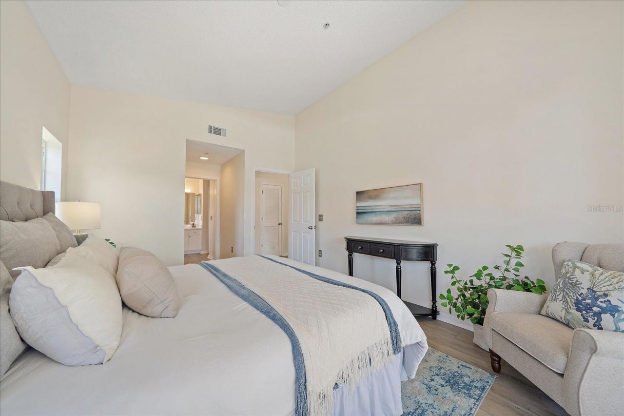 This second floor end unit in Plaza De Flores offers a larger floor plan, vaulted ceilings, concrete construction between floors, and concrete party walls between units providing added privacy and sound insulation in this gated Palmer Ranch community. With a brand new roof, new paving, and updated carports all completed in 2024, along with all assessments paid, this property offers added value and peace of mind not to mention a one year home warranty. Inside, the home has been freshly painted and features new luxury vinyl flooring throughout the entire home. The end unit positioning allows for additional natural light, creating a bright and comfortable living environment. The living room and primary suite both feature sliding glass doors that open to a private oversized, screened lanai, creating a seamless indoor outdoor flow that aligns with the Florida lifestyle. The kitchen has been refreshed with a new sink, a newer refrigerator, and a new washer and dryer. Both bathrooms include updated sinks and faucets, and the primary shower has been refreshed with new grout, contributing to the home's clean and well maintained condition. Located in Palmer Ranch, this property offers convenient access to the Legacy Trail for biking and walking, as well as Siesta Key beaches, downtown Sarasota, shopping, dining, and I 75. The ongoing redevelopment of the former Sarasota Square Mall into a mixed use destination with retail, dining, and residential spaces continues to enhance the area's long term appeal. Residents of Plaza De Flores enjoy a gated entrance along with amenities including a clubhouse with catering kitchen, heated pool and spa, fitness center, tennis court, and shaded outdoor gathering spaces.